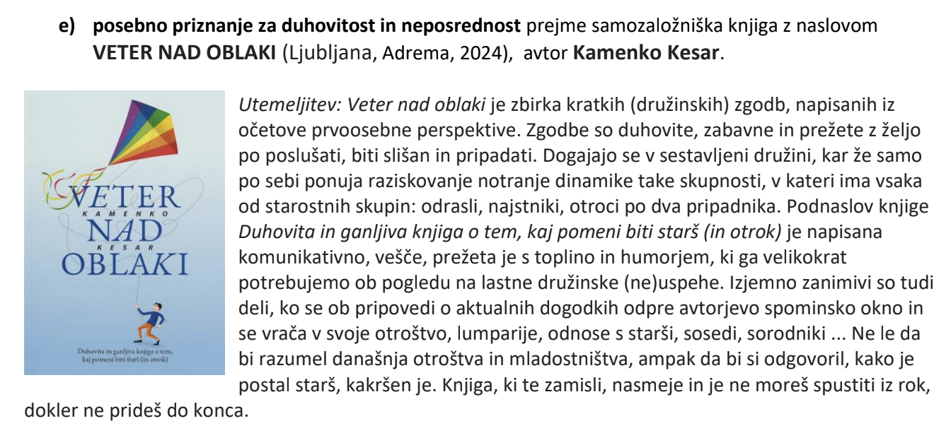 “Verjamem, da bo knjiga dosegla mnoge starše, da se bodo tudi sami zamislili, kako lahko z veliko mero motivacije, strpnosti in preko starševske ljubezni gradijo lepe in dolgovečne odnose z otroki, ki seveda odraščajo z bliskovito naglico. In pripadajo popolnoma drugi generaciji.”